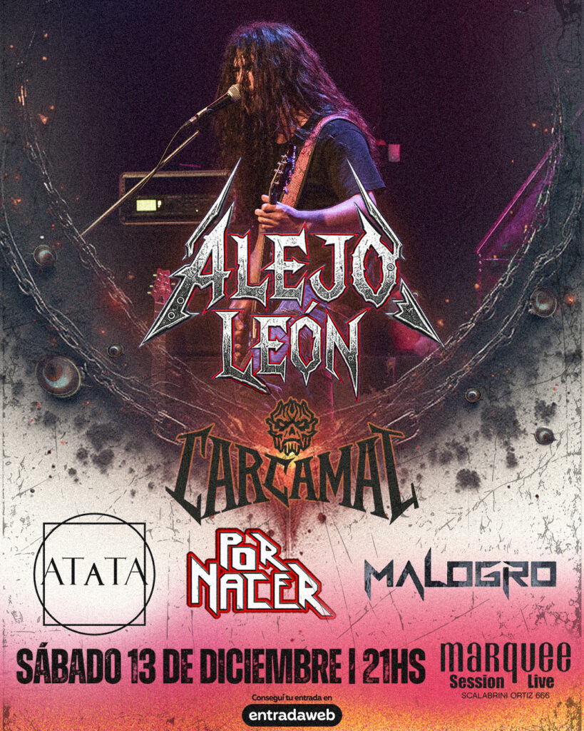 Alejo León cierra un año de crecimiento artístico y presentaciones intensas con un show especial en Marquee Session Live (Scalabrini Ortiz 666, CABA), el sábado 13 de diciembre a las 20 hs, en lo que será su presentación más extensa y profunda hasta el momento. Acompañado por su power trío habitual y con músicos invitados especialmente para la ocasión, León propone una noche donde el material de Ofanim, su reciente trabajo de estudio, será el centro de una puesta que apunta a la intensidad, la catarsis y el metal entendido como lenguaje emocional.