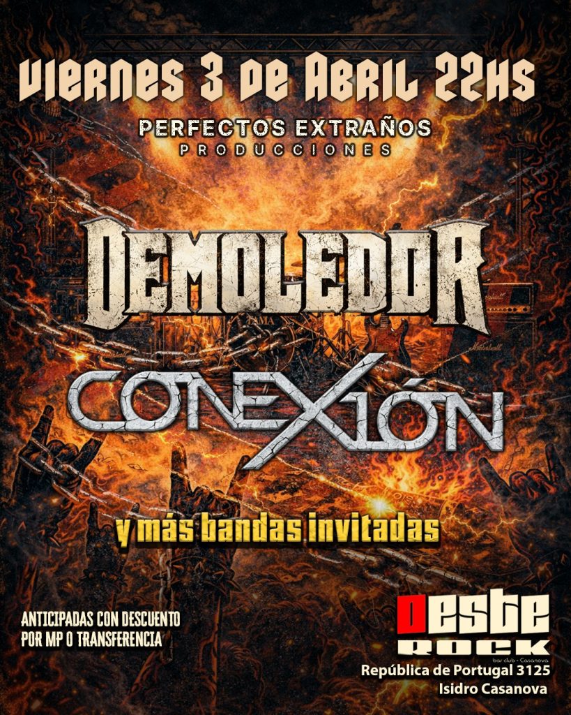 Como extra, la banda estará presentándose en Isidro Casanova el próximo 3 de abril, junto a Demoledor y otras bandas que pronto serán anunciadas. Esta será una gran oportunidad para disfrutar de la fuerza de los temas que serán parte de su primer placa discográfica y sumergirte en el mundo de Conexión.